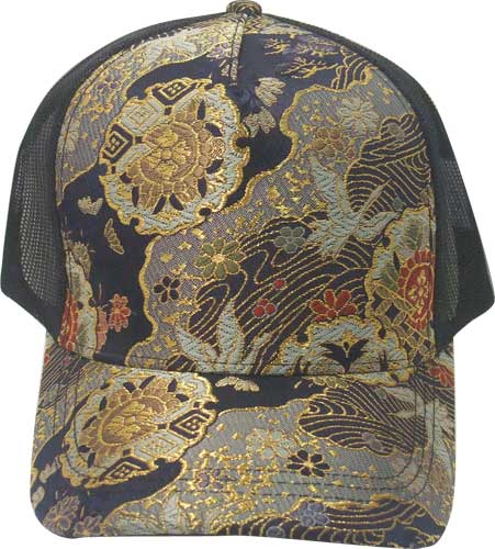 CAP キャップ 和柄 金襴 鶴 メッシュ SKAC-46 紺 |