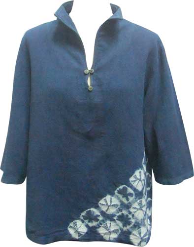 シャツ プルオーバー 藍染め 巻き上げ絞り 本藍 HUKU-13 女性用FREE |